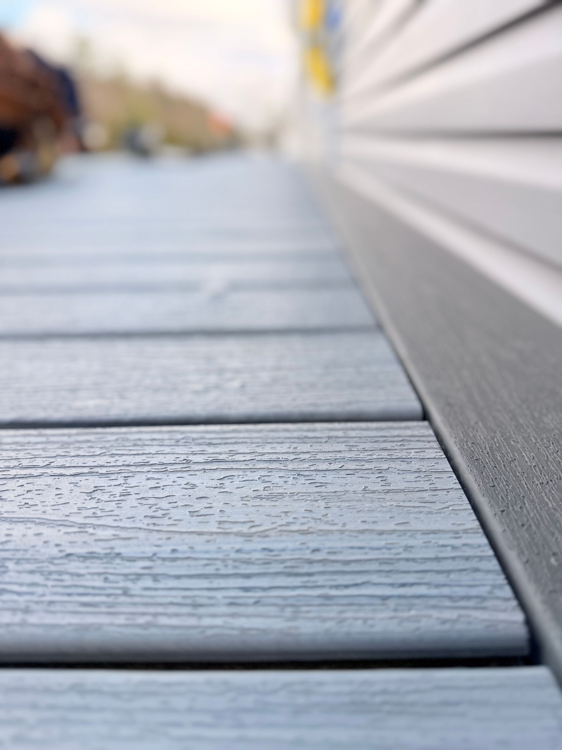 Composite decking was installed for long-lasting performance, paired with vinyl railings for safety and a clean finished look. Solar post lights improve visibility at night, while PVC fascia trim completes the structure with a polished appearance.