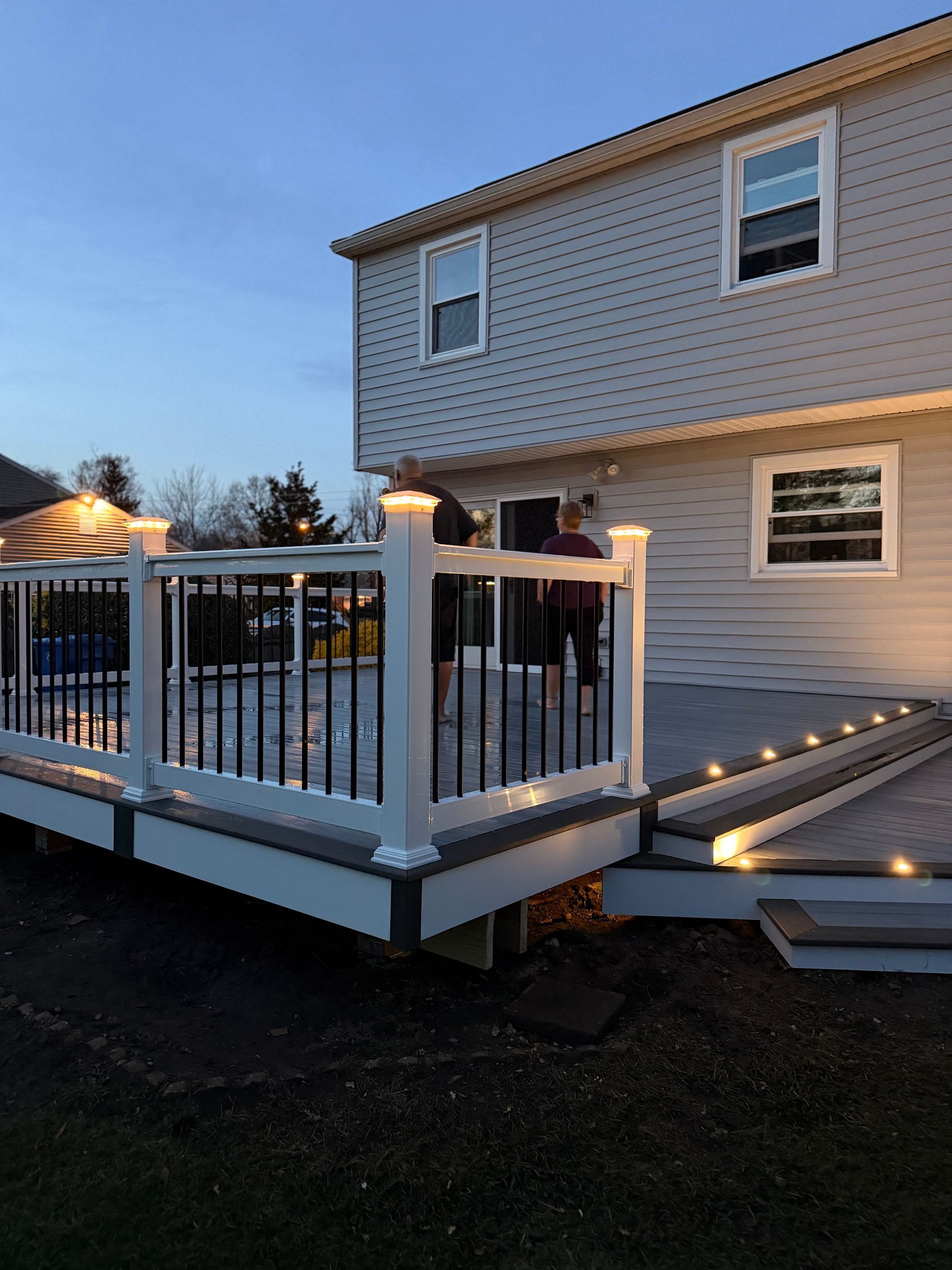 - Integrated LED step lights, under-rail lighting, and post caps
